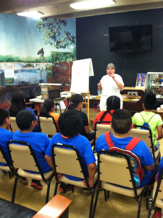 Another portion of the nature outing curriculum featured bees. Linda Daxon, beekeeper or apiarist, gave each rotating group a riveting lesson about bees. When Denise Ebersbach asked students fresh from Daxon's presentation what they liked and learned, without hesitation they recounted much of what Daxon presented.